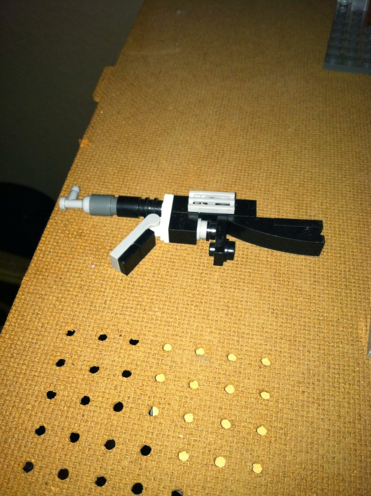 Several guns that Shea made. Now I'm no expert on guns, so if anyone knows what these look like feel free to let me know. I think this is the AK47 machine gun. |
