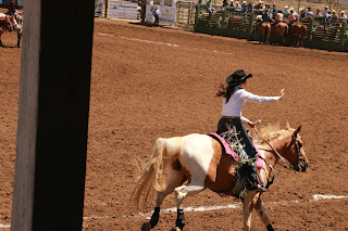 This young lady told her dad that she was riding her sheep all the way to the end of the arena...and she did! |